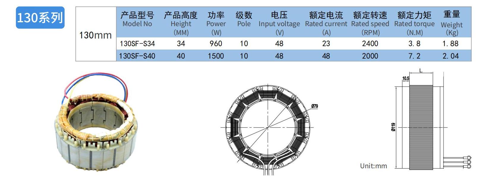 | 130SF-S34 | 3.8 | 2400 | 1.88 |